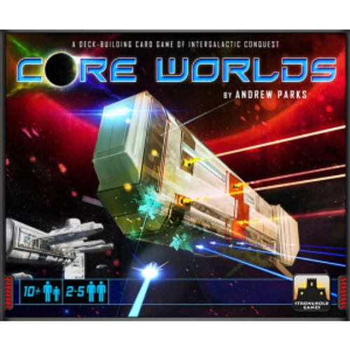 The ancient Galactic Realm, ruled from the Core Worlds of the galaxy, is waning. Now, the barbaric kingdoms that lie beyond the galactic frontier are amassing their strength, choosing this pivotal moment to strike at the heart of the fading republic, establishing new empires built upon the ashes of decaying civilizations. But these outer systems are not yet strong enough to engage the forces of the Core Worlds directly. The young kingdoms must first gnaw at the edges of the crumbling frontier, developing new types of units and shrewder tactics. They must build up their energy resources to launch magnificent fleets and overwhelming ground forces. Then, when the time is right, they must strike at the galactic core itself, claiming the most exalted planets for themselves. Core Worlds is a deck-building card game for 2-5 players. Each player controls a barbarian Star Empire represented by many cards. Throughout the game, players will invade Worlds and draft new Units and Tactics into their Empires. Each card lists its Empire Points in the upper right corner. The player whose Empire contains the most Empire Points at the end of the game is the winner!