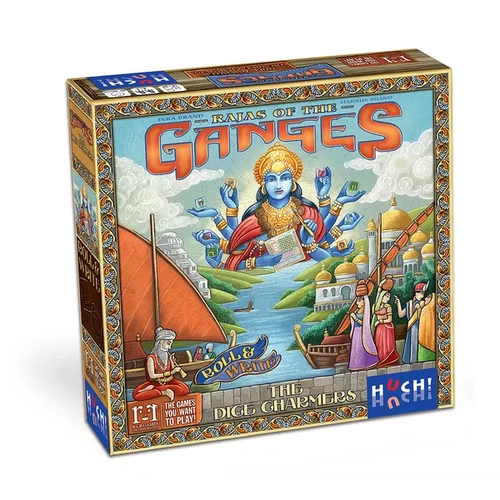 In Rajas of the Ganges: The Dice Charmers, players use eight symbol dice to develop their province, gather goods, and sell them at the market; win over influential personalities in the palace; and sail up and down the Ganges River.
