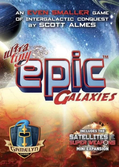 Ultra-Tiny Epic Galaxies is a complete and unabridged version of Tiny Epic Galaxies in a box the size of a deck of cards. It plays the full spectrum of 1 to 5 players, has all 40 original planets, and even includes the Satellites & Super Weapons Mini-Expansion!